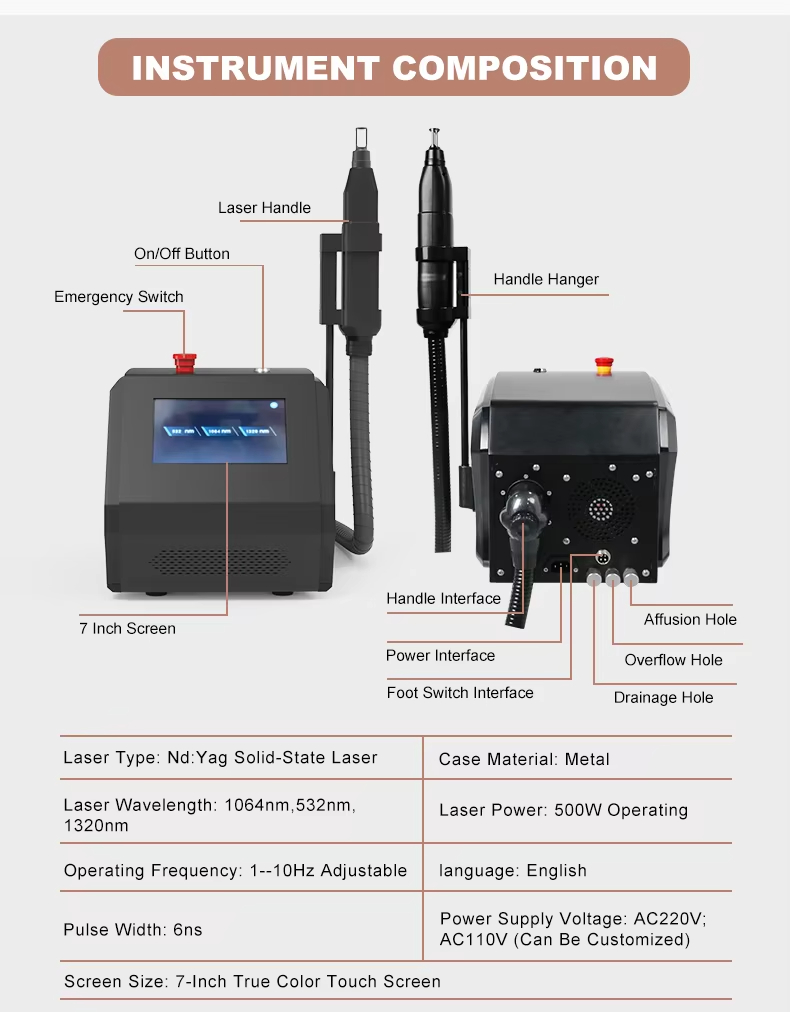 instantly, part of which turns into even smaller fragments and is excreted out of the body, and part of which is engulfed by human macrophages and excreted through the lymphatic system, thus getting rid of the pigment. Since normal tissues absorb less laser light of specific wavelengths output by the instrument, no normal tissues will be harmed, thus preserving the integrity of the cellular framework and never forming scarring conditions, which is a treatment safety unmatched anywhere else at present, so to the maximum extent to ensure that customers will not be troubled by post-treatment complications.
